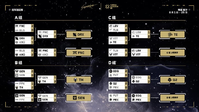 北京时间8月10日晚,2024无畏契约全球冠军赛小组赛,AMER赛区4号种子SEN爆冷击败PAC赛区1号种子GEN晋级八强;EMEA赛区1号种子FNC苦战三张图战胜AMER赛区3号种子KRU,成为第6支小组出线的队伍。