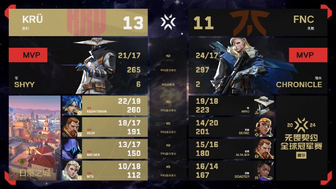 图一 日落之城 KRU 13:11 FNC MVP Shyy