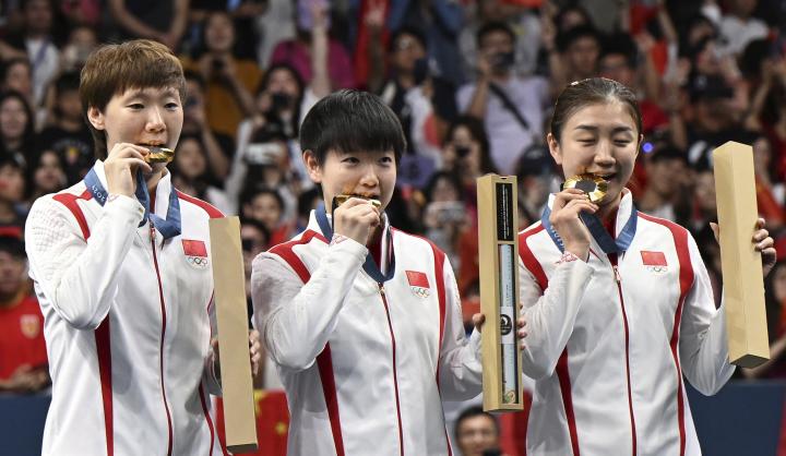 巴黎奥运会,30岁的陈梦成功拿下女单和女团两枚金牌。