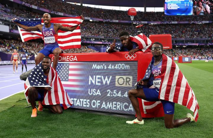 男子4x400米接力决赛:美国队破奥运会纪录夺冠我的靴子里面有蛇2024-08-11 03:13巴黎奥运会男子4x400米接力决赛,美国队破奥运会纪录,2分54秒43夺冠。博茨瓦纳以2分54秒53的成绩获得银牌并打破非洲纪录,英国队以2分55秒83的成绩获得银牌并打破欧洲纪录。比利时、南非刷新国家纪录,日本2分58秒33打破亚洲纪录。展开更多