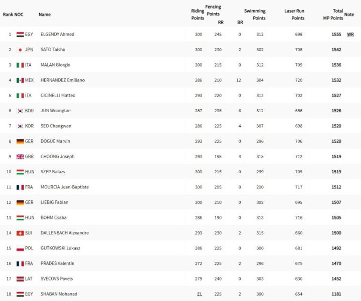 现代五项男子个人赛:埃及选手1555分,破世界纪录夺冠我的靴子里面有蛇 @懂球帝2024-08-11 04:318月10日巴黎,现代五项男子个人赛结束,埃及选手埃尔金迪以1555分,打破世界纪录夺得金牌。日本佐藤大宗和意大利马兰分获银铜牌。中国选手罗帅和李澍寰未能进入决赛,最终分列第20和24名。 展开更多