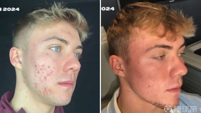 为了祛除脸上的痘印,曼联前锋霍伊伦接受了激光治疗,并展示了治疗前后的对比照片。