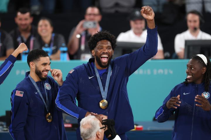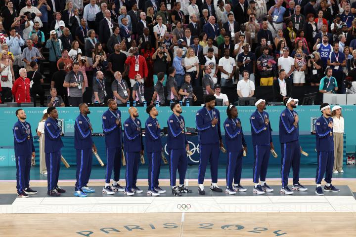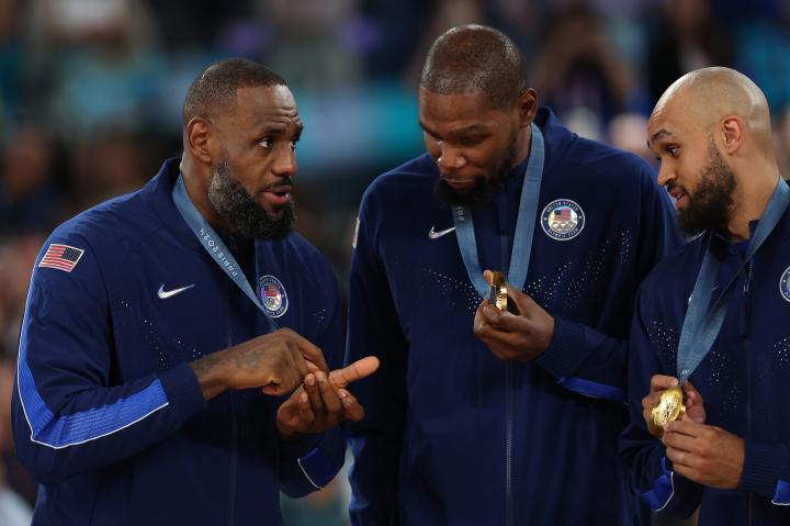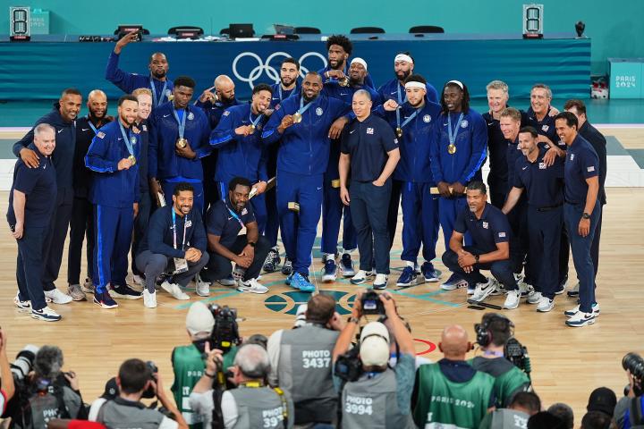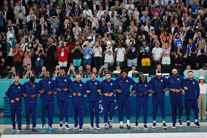 美国男篮颁奖典礼合集:詹姆斯搞怪+居合影C位,詹库杜留合影绿鱼绿 @懂球帝2024-08-11 06:58北京时间8月11日,巴黎奥运会男篮决赛,美国男篮98-87力克法国队,成功实现奥运5连冠。赛后举行了颁奖典礼,詹姆斯搞怪庆祝并在合影中坐在地上处在C位,首次代表美国队参加大赛就夺冠的恩比德也相当兴奋,很有可能在国家队赛场上演最后一舞的詹库杜也留下了珍贵合影。展开更多