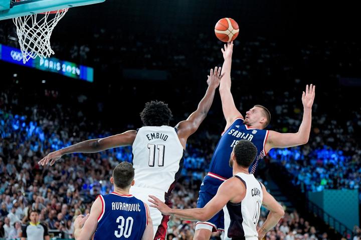 半决赛,美国男篮迎战塞尔维亚。面对这个小组赛被自己大胜的对手,美国队依旧不敢轻敌,因为对方阵中有号称当今NBA第一人的约基奇。果不其然,塞尔维亚在约基奇的带领下抢占先机,这场比赛库里终于站了出来,他首节便得分上双,帮助美国队咬住比分。然而塞尔维亚队这场三军用命,三分神准,三节过后仍76-63领先美国,形势已经不容乐观。