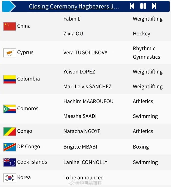 官方:李发彬、欧紫霞担任巴黎奥运闭幕式中国代表团旗手中侦探徐尔摩斯 @懂球帝2024-08-11 13:29北京时间8月11日,据巴黎奥运会官方消息,举重冠军李发彬、中国女曲队长欧紫霞将担任巴黎奥运闭幕式中国代表团旗手。在本届巴黎奥运会上,李发彬在举重男子61公斤级的比赛中成功卫冕,夺得金牌。而作为中国女曲队长的欧紫霞则是带领着中国女曲连克强敌,时隔16年再度闯进奥运决赛,最终帮助中国代表团夺得一枚银牌。本届巴黎奥运会闭幕式将于北京时间明天凌晨3:00进行。欧紫霞 图左展开更多