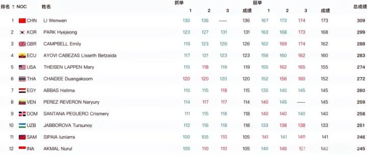 挺举比赛,李雯雯167公斤开把稳稳举起,韩国选手朴惠正第二把举起168公斤,李雯雯第二把成功举起173公斤,总成绩309公斤锁定金牌!
