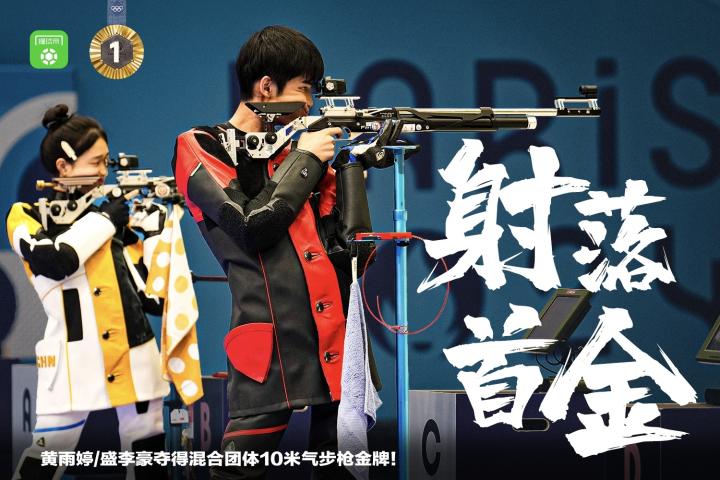 第1金,黄雨婷/盛李豪,射击混合团体10米气步枪