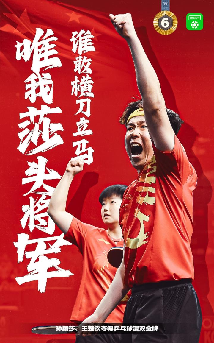第6金,王楚钦/孙颖莎,乒乓球混合双打
