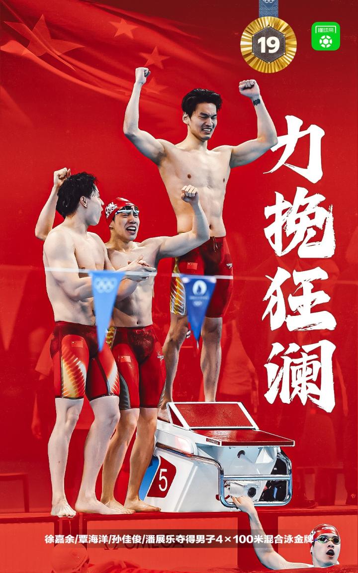 第19金,徐嘉余/潘展乐/王长浩/覃海洋/孙佳俊,游泳男子4x100米混合泳接力