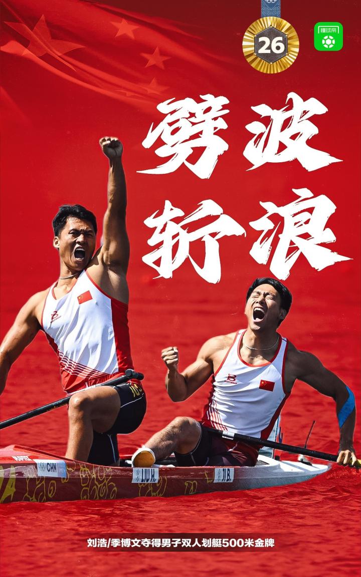 第26金,季博文/刘浩,男子500米双人划艇皮划艇静水