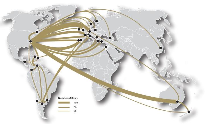 根据前文提到的FIBA的统计,除了美国外,西班牙(包括男女篮)是另一个主要人才输出国。
