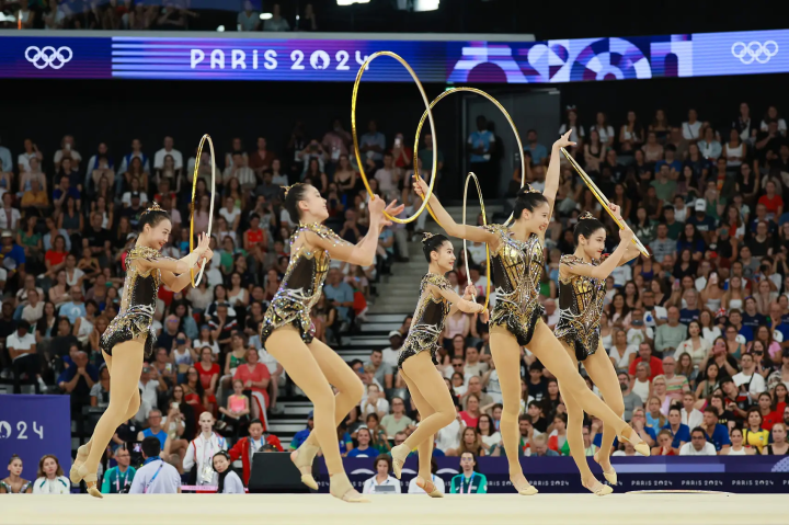 在艺术体操团体全能决赛中,中国姑娘们展现了美轮美奂的国风表演,美到失语,获得金牌,同样书写了新的历史。