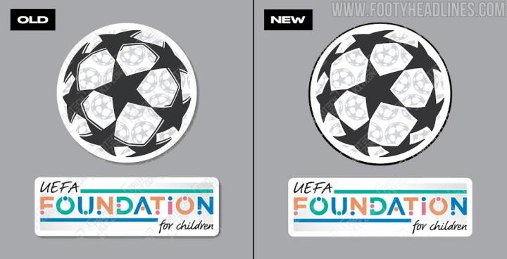 欧洲冠军联赛臂章外增加了黑色边框,以提高徽章的可见度,并与各种球衣颜色形成了鲜明对比。此外,星星的3D效果已被删除。