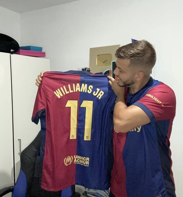 这名球迷晒出了尼科-威廉斯的巴萨11号球衣,并发文写道:“我是第一个拥有尼科-威廉斯巴萨球衣的球迷。你们认为尼科-威廉斯会加盟巴塞罗那吗?还是留在毕尔巴鄂竞技呢?”