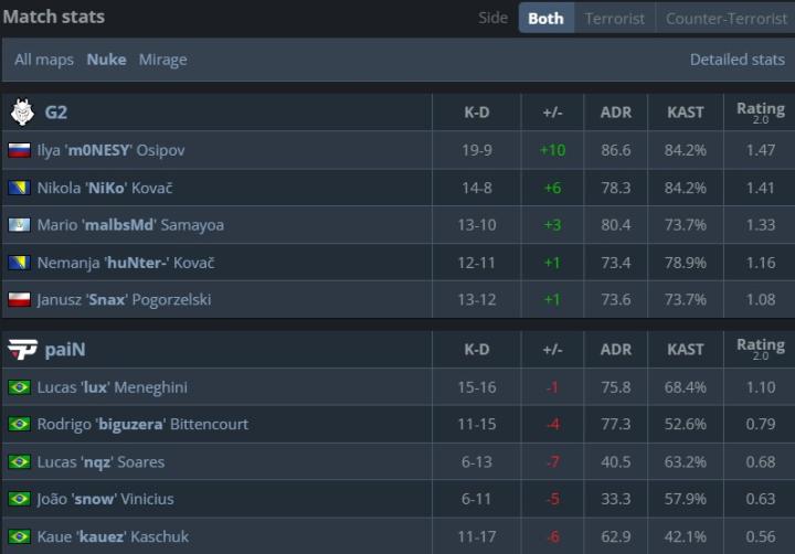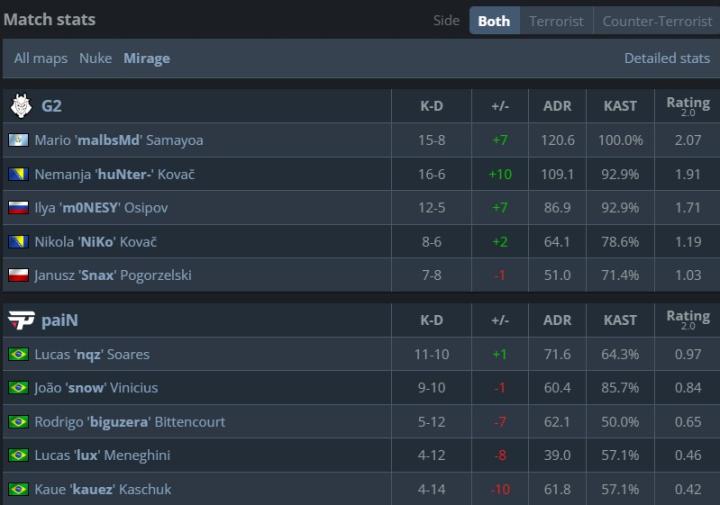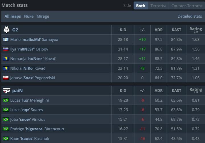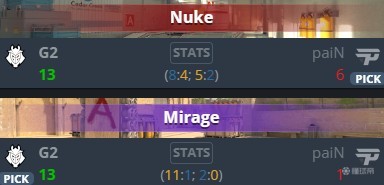 首轮爆冷不敌SAW后,G2触底反弹,渐入佳境,Snax的队伍没给巴西人任何机会,直落两图战胜paiN将其淘汰出局,其中图二只给了对手“一分父爱”。