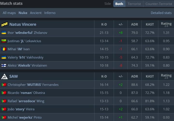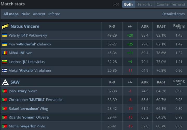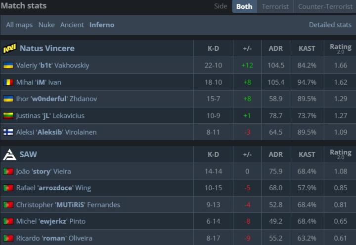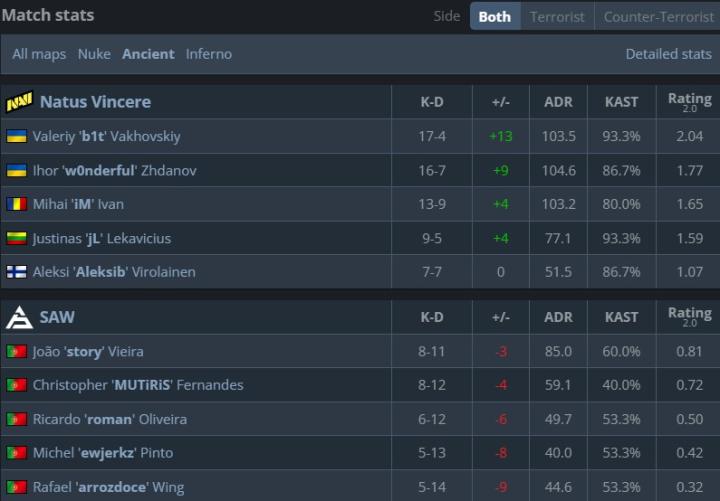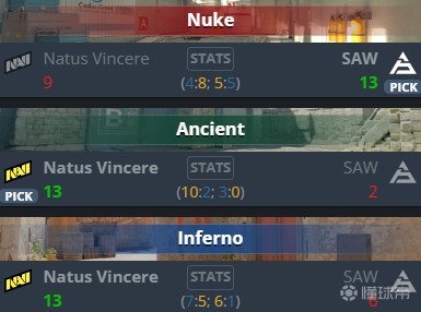 天生赢家让一追二艰难战胜本届赛事黑马SAW,挺进IEM科隆四强。NAVI在图二遗迹中彻底觉醒,b1t开启打bot模式砍下17-4的kd以及2.04的超高rating,在比赛第7回合他完成了一波精彩1v4,此后SAW在遗迹中再未拿到1分。在图三中NAVI也并未给对手过多机会,拿下一个四强名额。SAW由于此前出色的发挥,已经提前晋级playoff,他们将与FaZe争夺一个四强席位。