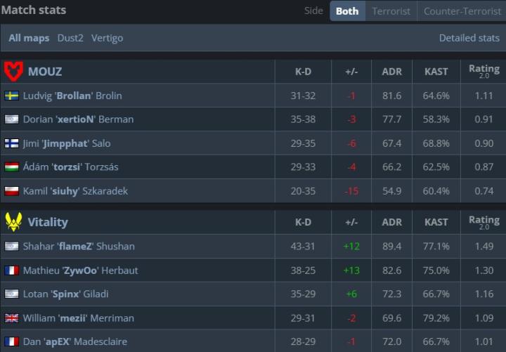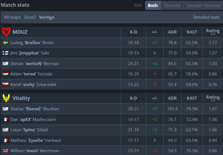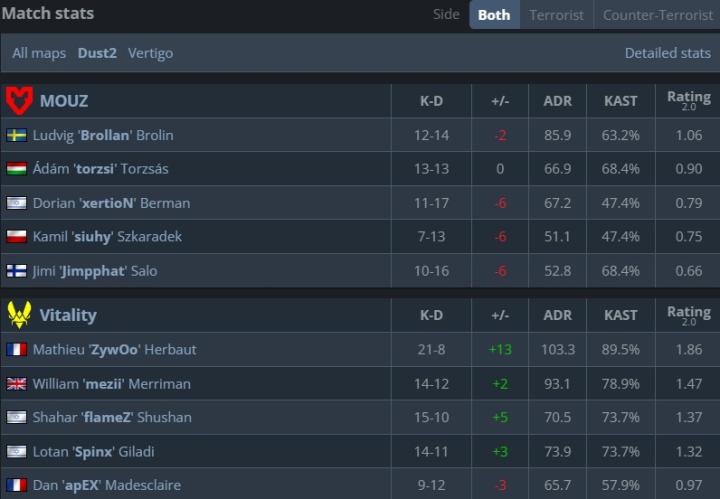 小蜜蜂战胜老鼠笑傲强强对话,三连胜晋级赛事四强。Vitality在此次科隆赛事发挥平稳且平均,队内没人平均rating排进赛事前八,但仍旧提前锁定四强席位。