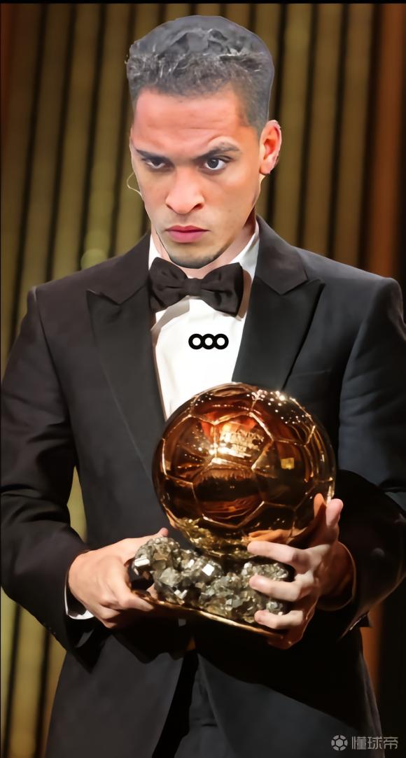 而第三张照片就有点耐人寻味了,这是一张安东尼扬起左眉的头像,叠加在阿根廷巨星梅西赢得金球奖时的身体上。