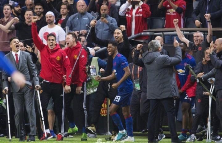 16-17赛季,由于伤病原因且需要多线作战,穆里尼奥麾下的曼联放弃了联赛争四晋级欧冠的资格。虽然在联赛排名第6,但曼联在杯赛方面却收获颇丰:在赛季初的社区盾杯,曼联2-1击败英超新科冠军莱斯特城夺冠。联赛杯方面,曼联连斩北安普顿、曼城、西汉姆联、赫尔城闯入决赛,最终以3-2夺冠。欧联杯上,曼联一路过关斩将,一举夺魁。