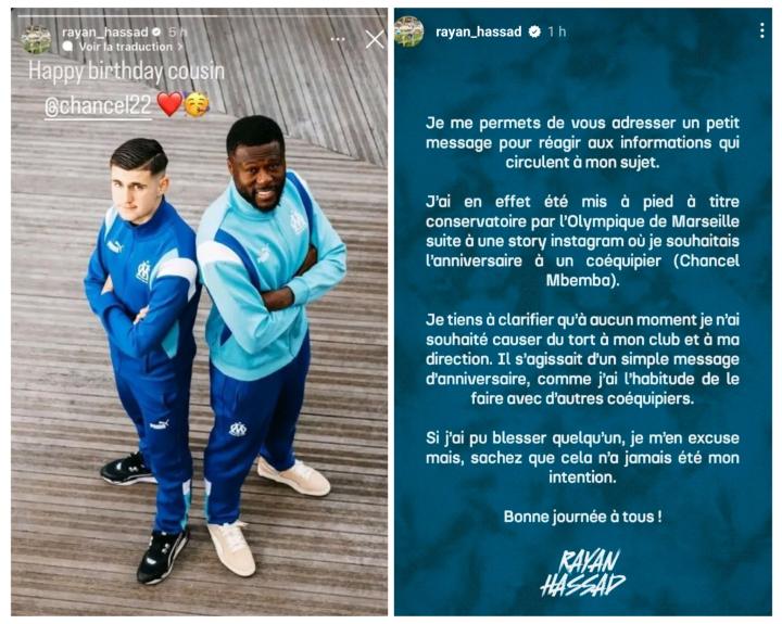 18岁的小将拉扬-哈萨德(Rayan Hassad)表示,他被俱乐部“预防性解约”——一项类似三停(停训,停薪,停赛)的严厉处罚,只因他在社交媒体上祝福队友姆本巴生日快乐可能用到了较为敏感的词汇。