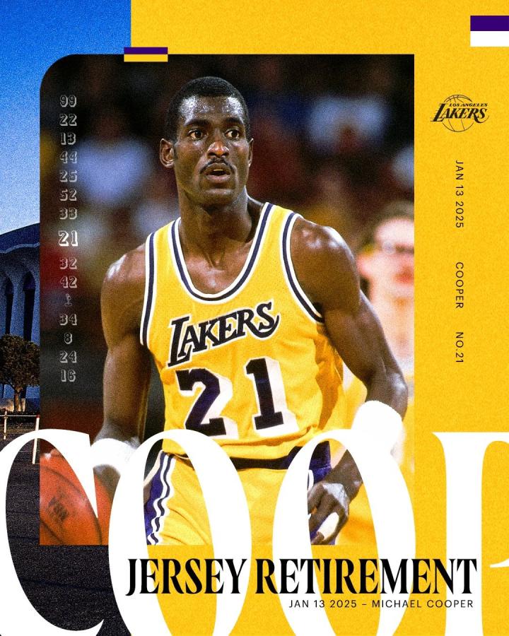 湖人官方:“五次冠军、防守专家,展示时间到!2025年1月13日——我们将迈克尔-库珀的球衣高悬在湖人传奇球员行列之中。”