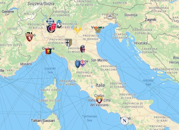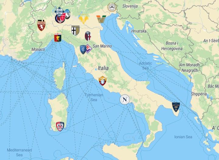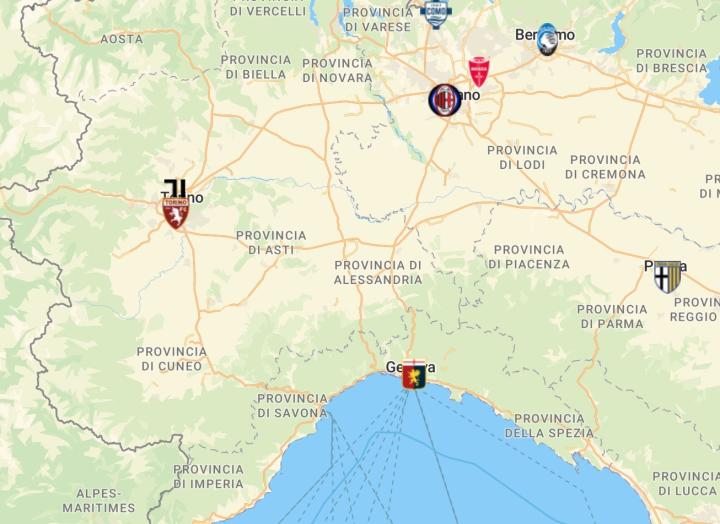 意甲20队地理分布:伦巴第大区聚集5队,北多南少仍是主旋律
