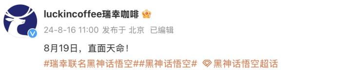瑞幸官宣联动《黑神话:悟空》:敢问鹿在何方挪威球王阿热的经纪人 @懂球帝2024-08-16 16:53北京时间8月16日11:00,瑞幸官宣与国产游戏《黑神话:悟空》开展联动活动,联动产品将于8月19日正式推出。瑞幸官方同时也晒出海报,海报上右上角的台词也是玩起了谐音梗:“敢问路在何方”是86版西游记的片尾曲,而鹿是瑞幸的经典Logo,两者合在一起也是趣味十足。《黑神话:悟空》由国产工作室“游戏科学”研发和发行,该作将于8月20日正式发售,登录PS5、Steam、Wegame平台。展开更多