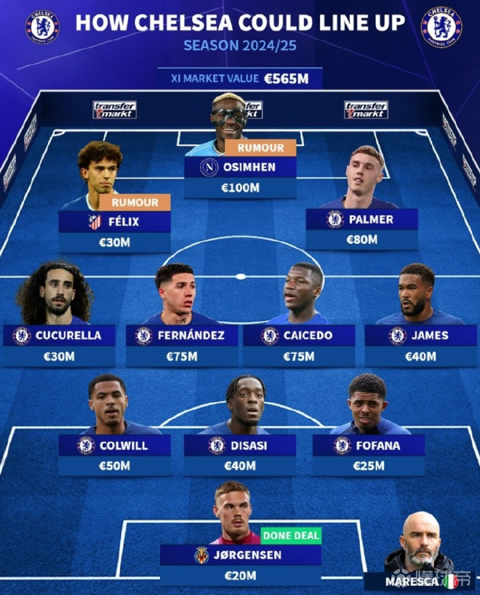 德转预测切尔西新赛季阵容:菲利克斯、奥斯梅恩在列