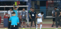 第30分钟,郑达伦放倒黄紫昌,裁判出示黄牌