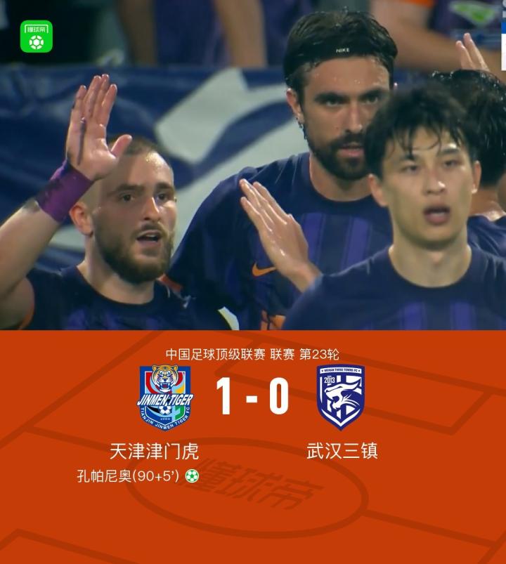 津门虎1-0三镇,孔帕尼奥造点+点射绝杀,吾米提江伤退
