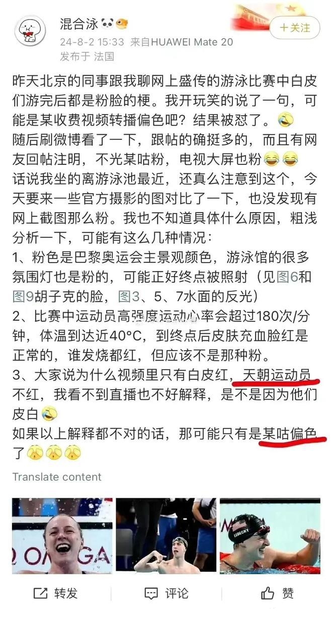 然而,就在人们为中国游泳队鸣不平、质疑美国“灭霸队”的时候,袁昊然却为美国游泳队辩护,对潘展乐的100米自由泳破世界纪录夺冠“阴阳怪气”。