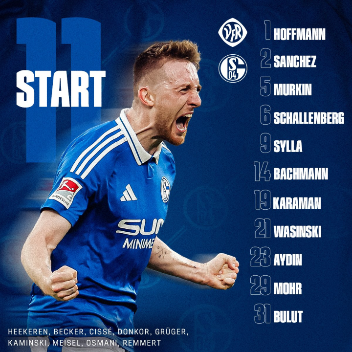 沙尔克对阵亚伦名单:霍夫曼等四人首次首发,替补小将为主