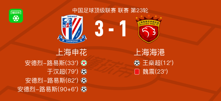 上海申花vs上海海港球员评分:于汉超8.3分,魏震4.2分