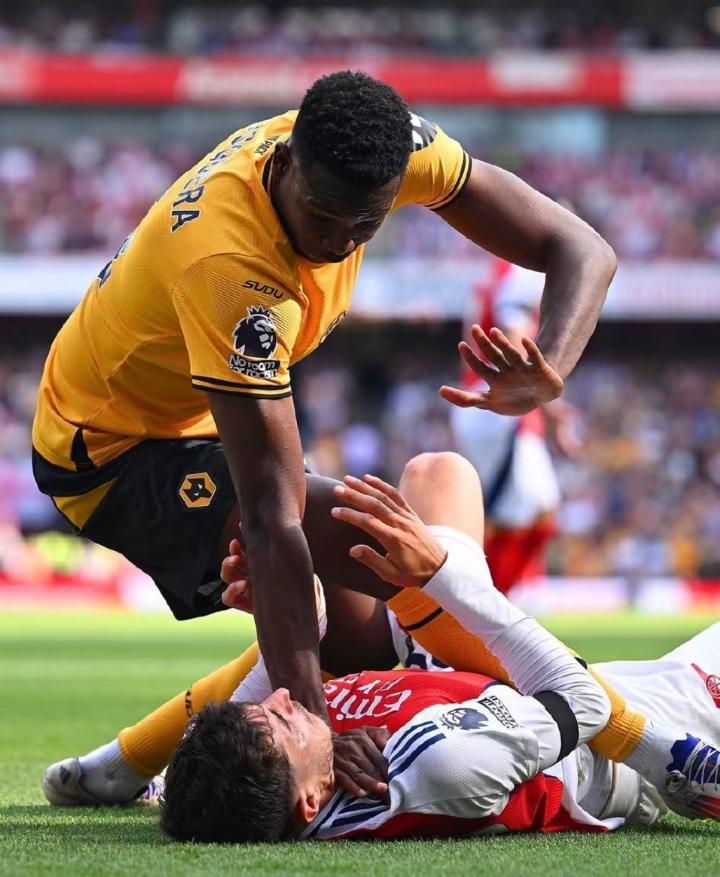 在今天晚上进行的英超第一轮阿森纳主场对阵狼队的比赛中,狼队后卫莫斯克拉和哈弗茨在一次拼抢中产生冲突,前者在落地的时候有一个锁喉的动作。