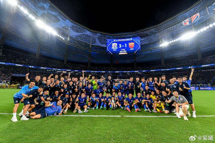 北京时间8月17日晚,中超第23轮焦点大战,上海申花在主场3-1逆转战胜上海海港。赛后,吴曦在微博晒出球队大合照庆祝取胜。