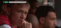 第19分钟,镜头给到替补席,多特新援拜尔替补待命