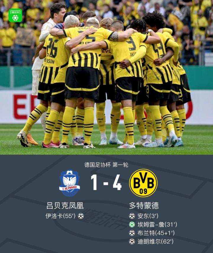 多特4-1吕贝克凤凰晋级德国杯第二轮,安东破门,格罗斯两传