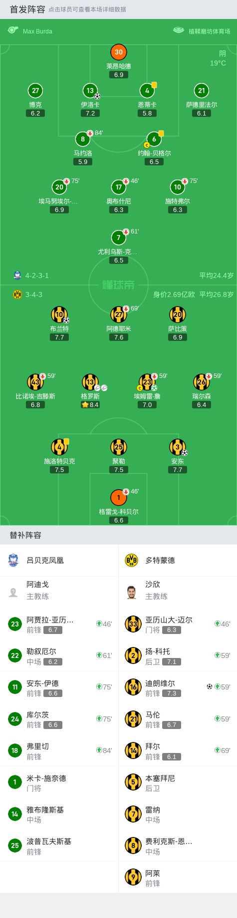 第30分钟,阿德耶米造点,埃姆雷-詹主罚命中,多特2-0吕贝克凤凰