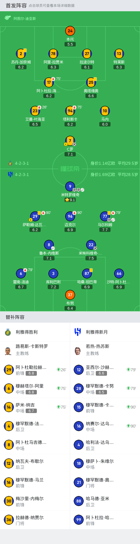 第79分钟,利雅得新月换人调整,沙赫拉尼、卡努替补上场