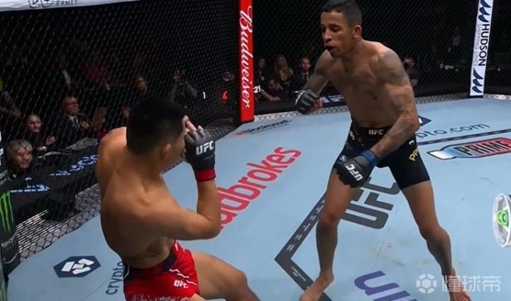 第二回合,李景亮送出重拳,但吃到对方顶膝,随后对方的速度和距离问题给李景亮造成了很大麻烦,在几记重拳后,李景亮直接被对手击倒,败下阵来。