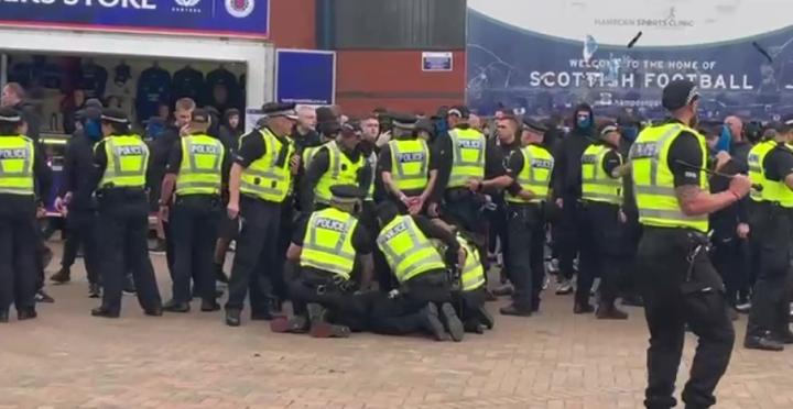 持有警棍的警察追赶这些人群,期间有多名球迷被逮捕。据报道发生了打斗,一名警官据称被打倒在地,多名球迷被警察警告收起手机,停止拍摄。