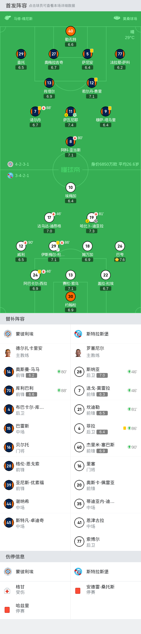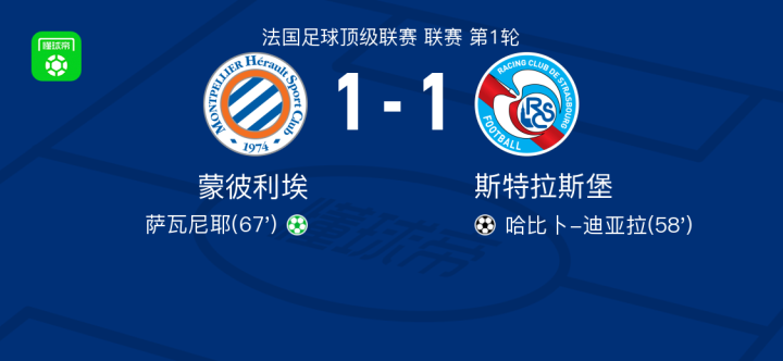 蒙彼利埃1-1斯特拉斯堡,哈比卜-迪亚拉破门,萨瓦尼耶扳平比分
