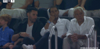 镜头给到现场观战的纳达尔和斯卡洛尼