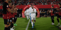 赛前马略卡球员列队欢迎皇家马德里众将入场