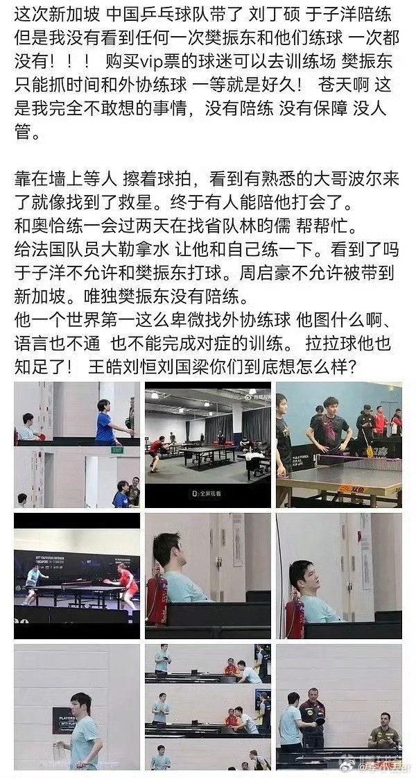 网传粉丝为樊振东遭受待遇打抱不平