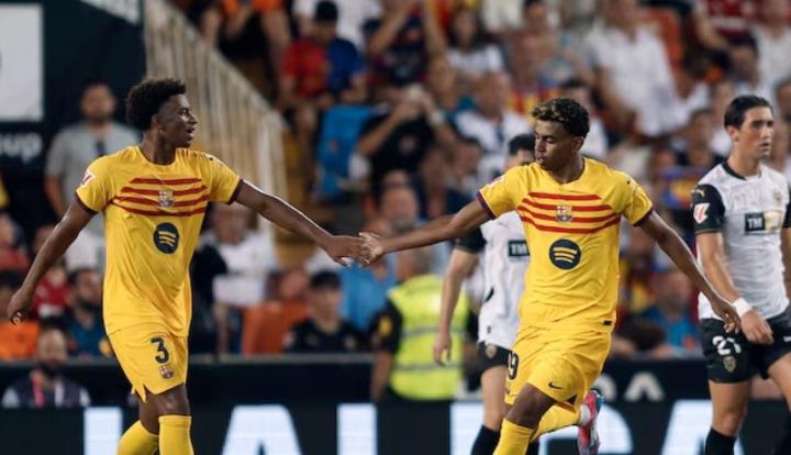 其中,巴萨是首轮中最多球员登场的球队,弗里克派出了5名年轻球员首发对阵瓦伦西亚,他们是:亚马尔(17岁)、库巴西(17岁)、贝尔纳尔(17岁)、巴尔德(20岁)和卡萨多(20岁)。
