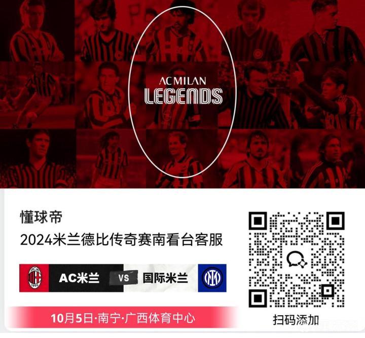 @2024米兰德比传奇中国赛 将于10月5日在广西南宁举办,8月20日10:00正式开启售票,赛事官方票务平台包括猫眼、大麦、秀动。我懂将与主办方共同组织南看台米兰球迷方阵,欢迎各地米兰球迷加入南看台,购票合作均可添加企业微信「2024米兰德比传奇赛南看台客服」。