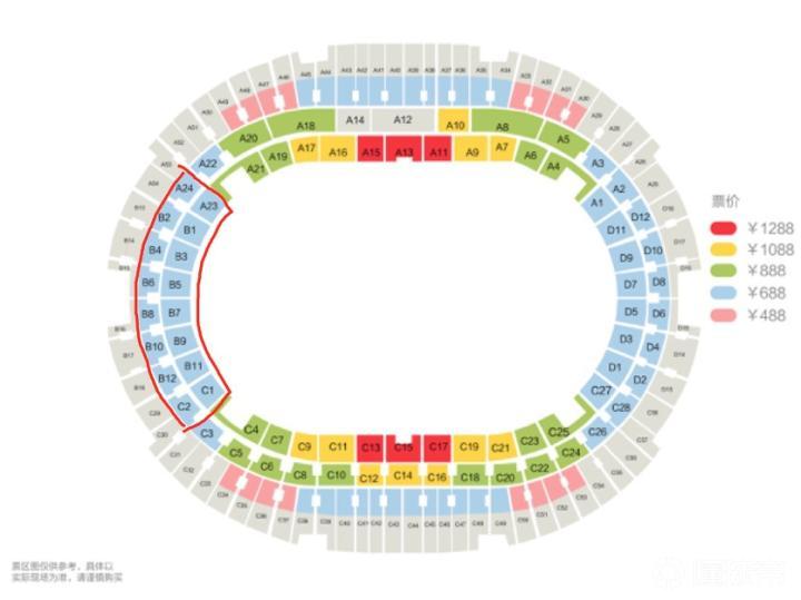 售票看台:南看台所属区域(A23-A24区,B1-B12区,C1-C2区),详情请添加客服微信咨询。