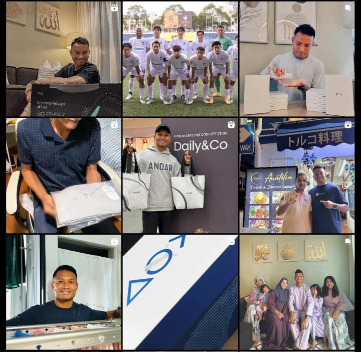 在爆火之前,桑尼就一直是PUMA的签约球员,在他的个人社交媒体上,餐厅、卫浴、器械、保健品、服饰等多个品类的品牌时常出现。在爆火之后,情况依然如此。作为新加坡足球的门面之一,桑尼似乎并不太需要为经济发愁。
