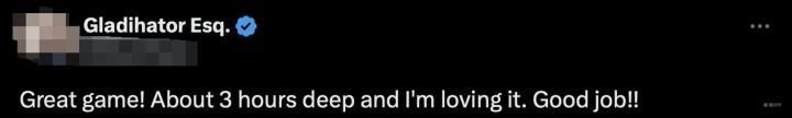 “很棒的游戏!我已经沉浸了三个小时并且深深爱上了,真的很棒!”